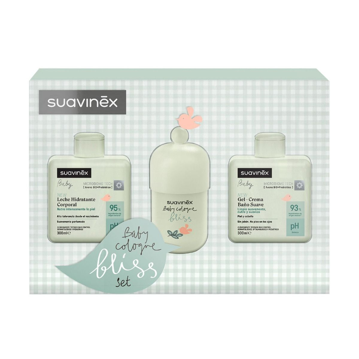 Set de Suavinex completo para tu bebé, con una delicada fragancia apta para piel sensible como la de los bebés.