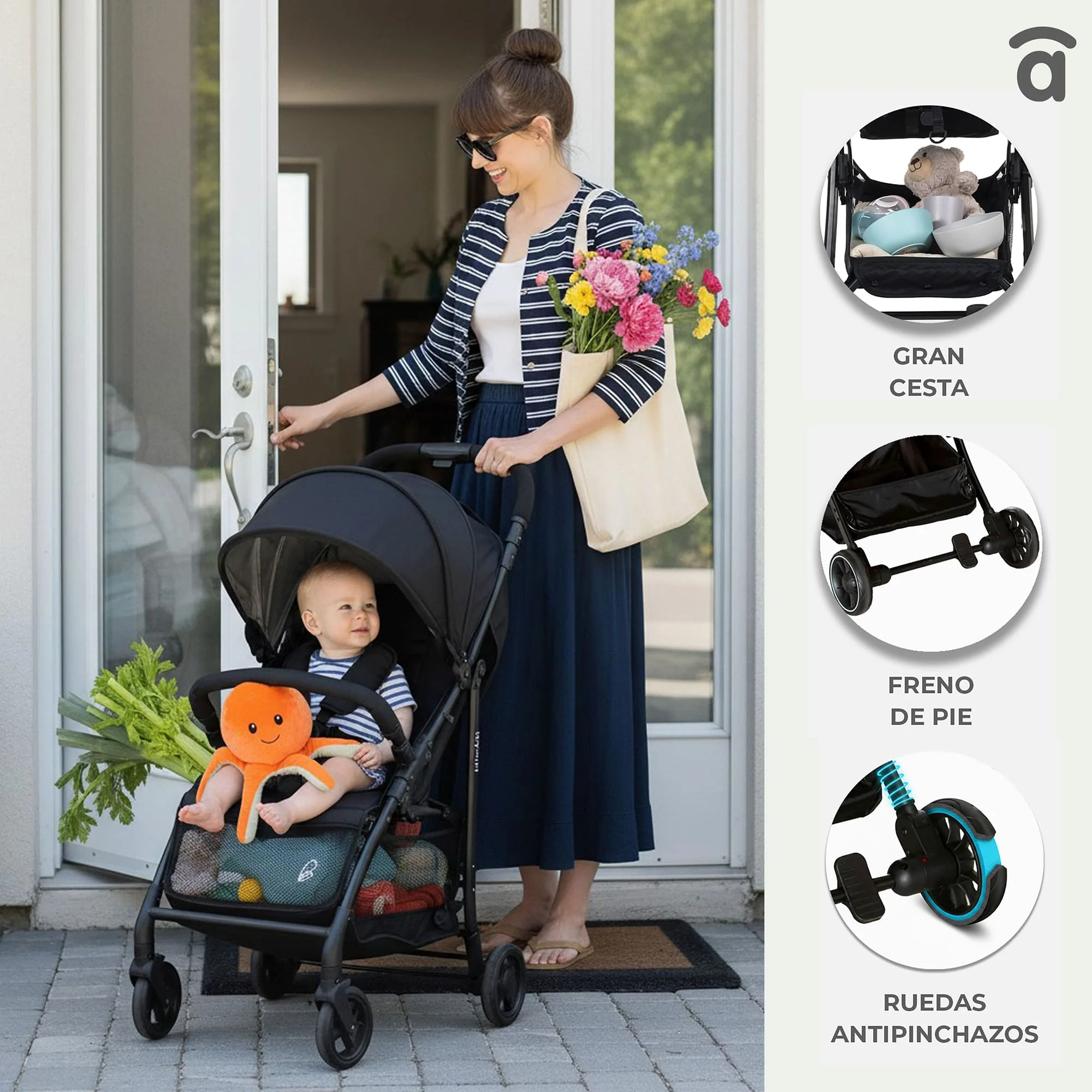 Comodidad y estilo. Con tan solo 5kg de peso, la Silla de Paseo Milán se convertirá en tu mejor aliada para llevar a tu bebé de paseo.