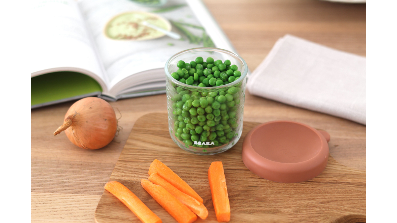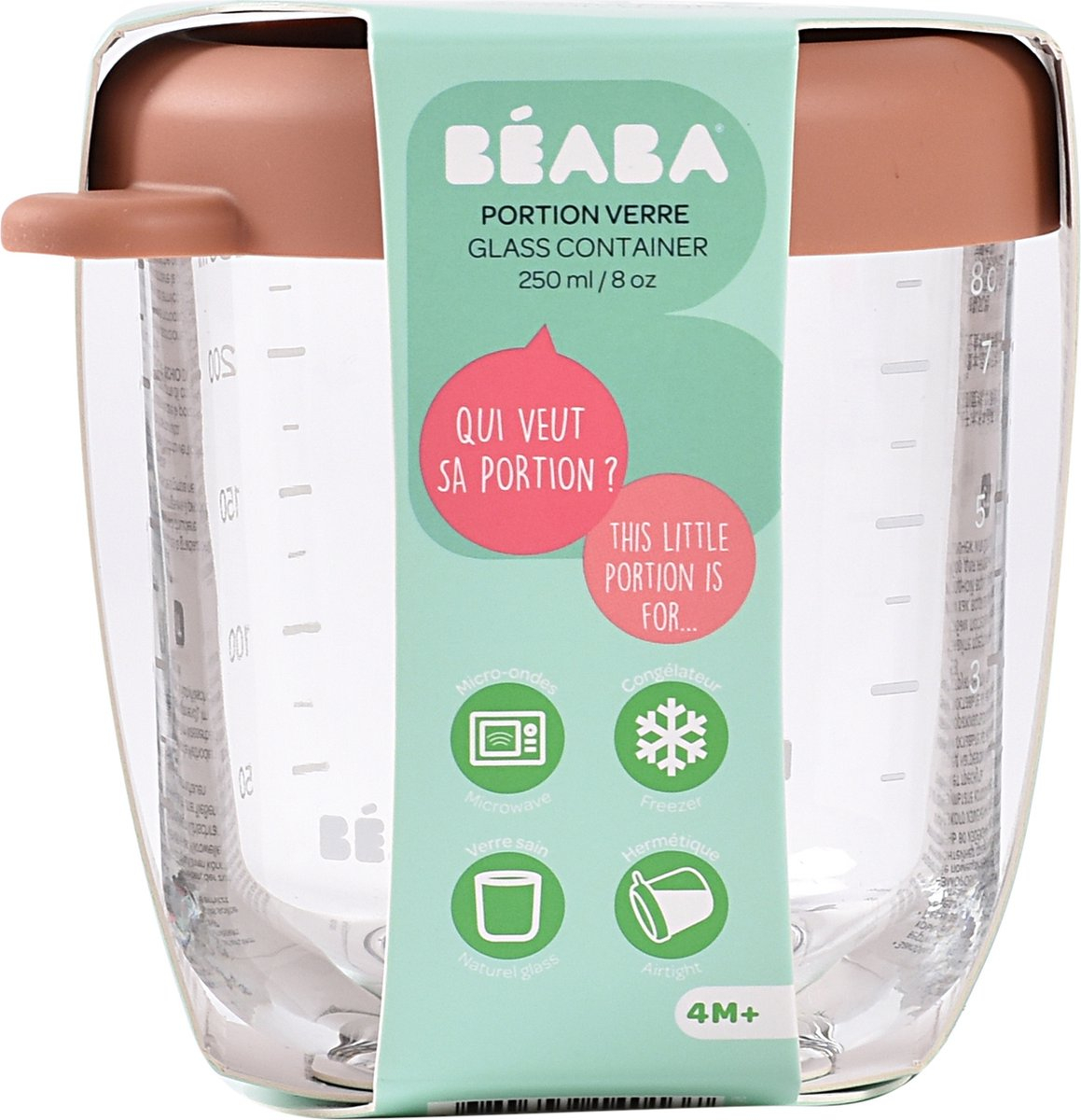 Tarro de cristal Béaba 250 ml extra-resistente, no se altera con el tiempo.
