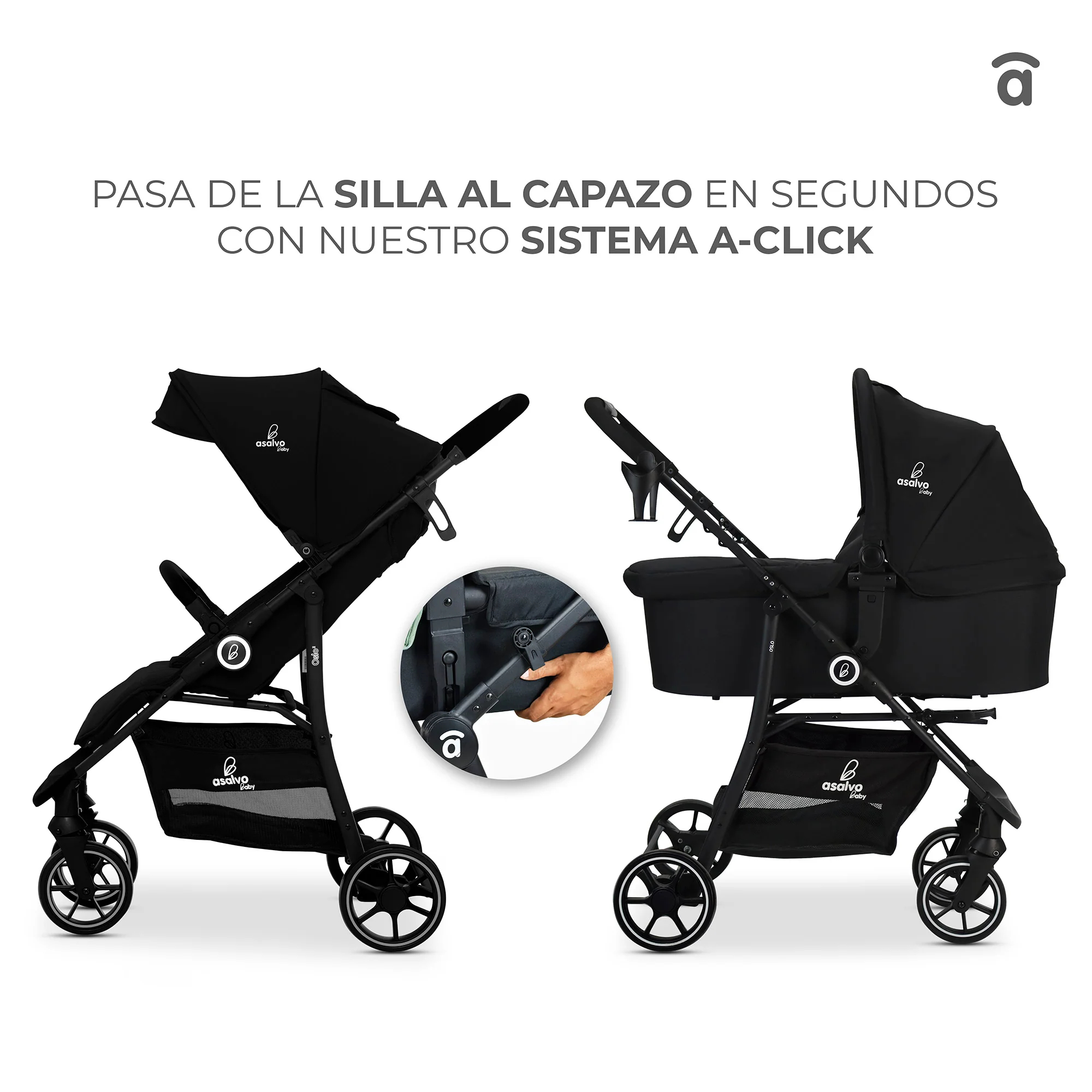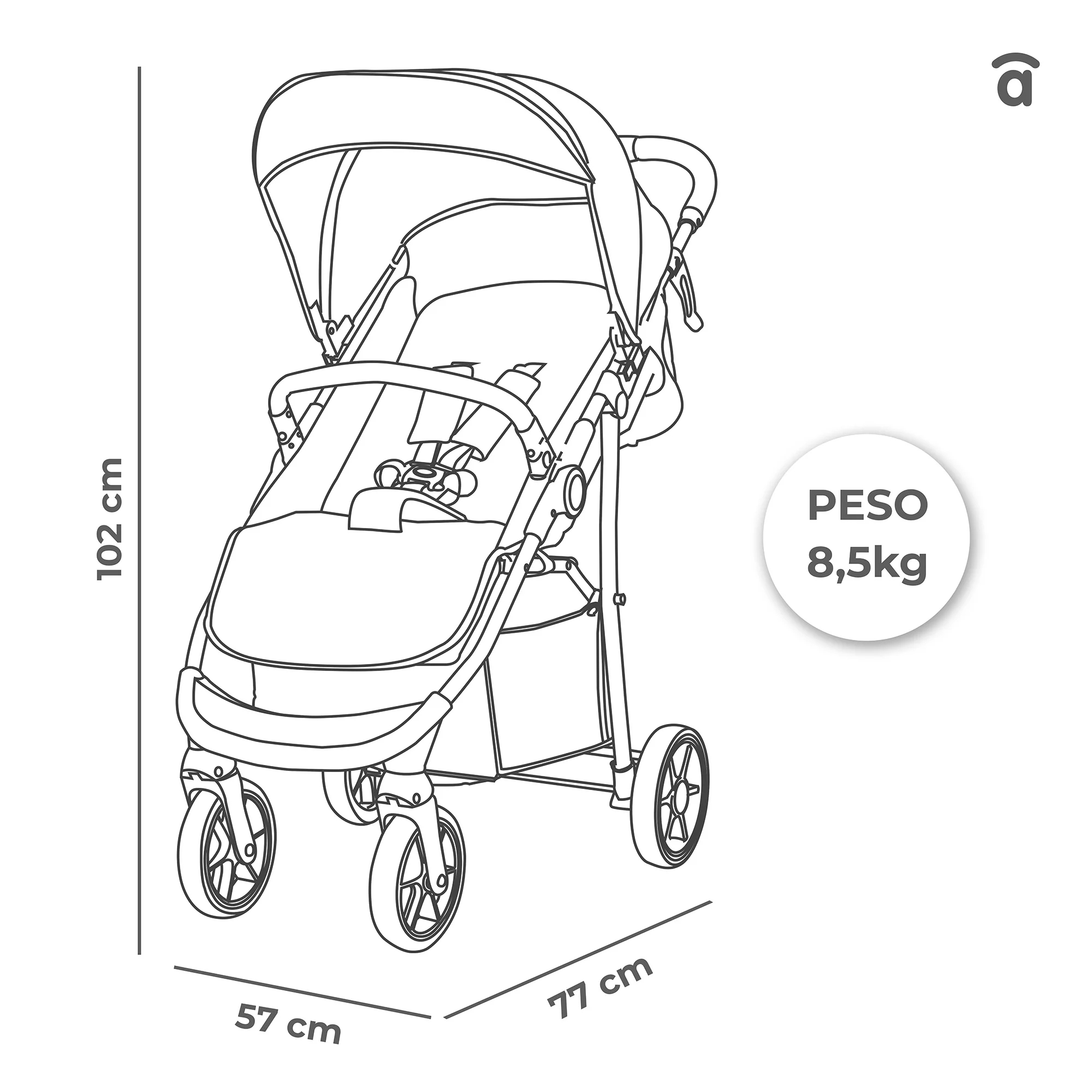 Incluye: Chasis, silla de paseo, capazo, silla de auto y cubrepiés